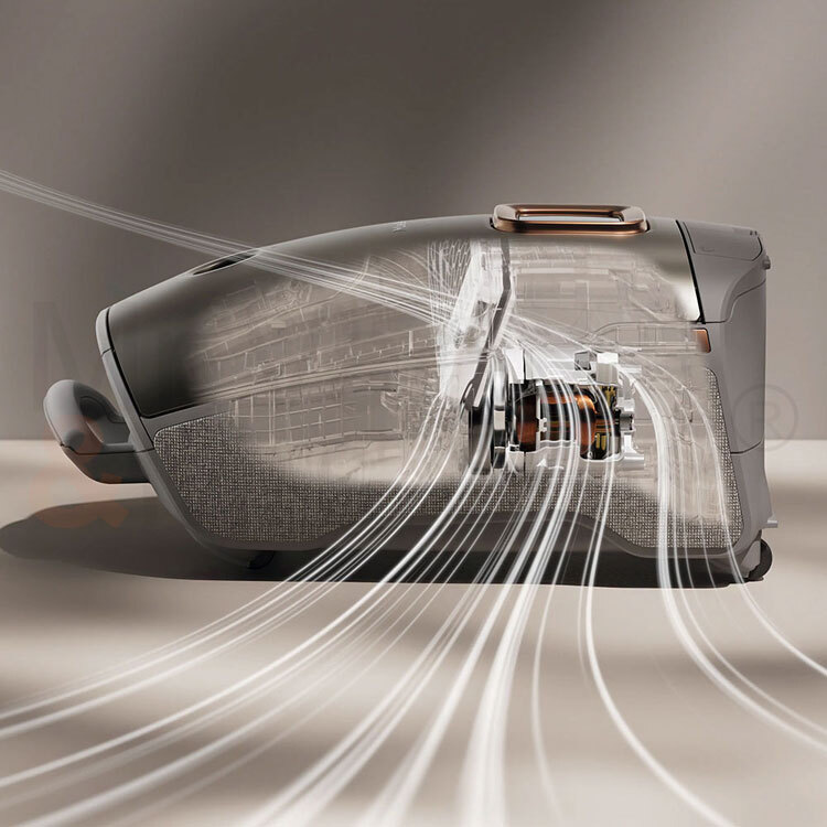 Thanks to the Lightweight Skeletal System designed by Miele, the Guard is Lightweight, Quiet and Powerful. The Miele Guard packs Miele's PowerLine Motor with noise optimized fan, which was designed to keep the machine quieter at 75 dB and lighter! Same Power, Less Weight and of course as with all Miele Canisters; Made in Germany.