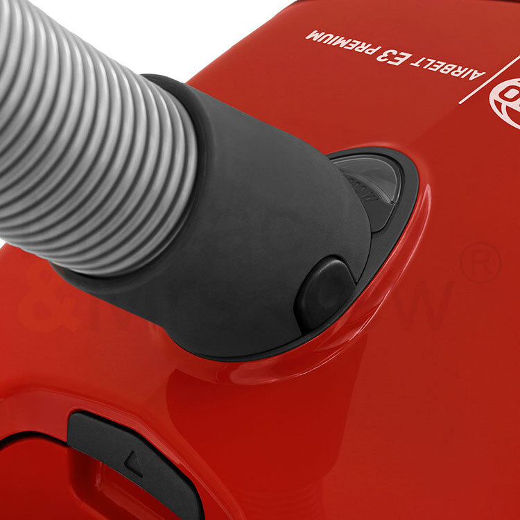 The E3 uses a three-stage filtration system to deliver S-Class filtration, removing more than 99.97 percent of particles down to 0.3 microns. With a combination of an S-Class pre-motor microfilter, a three-layer AeraPure™ filter bag, an exhaust filter, and a tightly sealed housing, the E3 is built to capture fine dust and help maintain a cleaner, more allergen-controlled environment.
