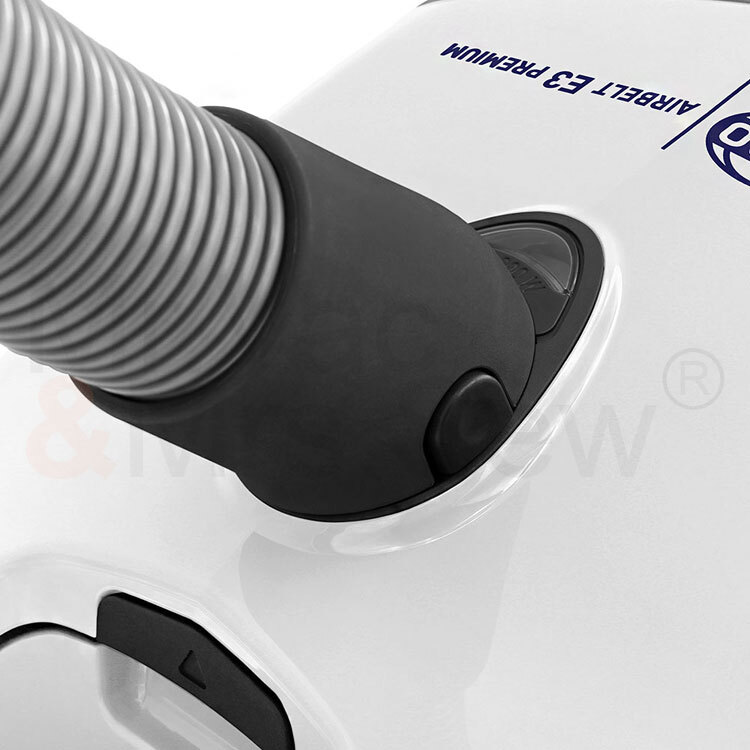 The E3 uses a three-stage filtration system to deliver S-Class filtration, removing more than 99.97 percent of particles down to 0.3 microns. With a combination of an S-Class pre-motor microfilter, a three-layer AeraPure™ filter bag, an exhaust filter, and a tightly sealed housing, the E3 is built to capture fine dust and help maintain a cleaner, more allergen-controlled environment.