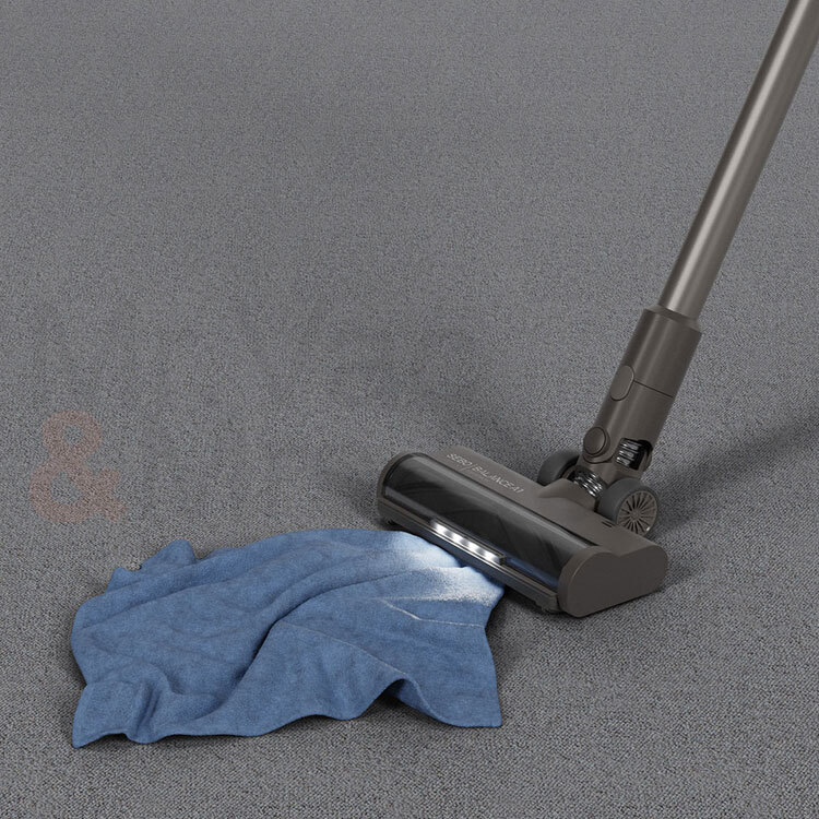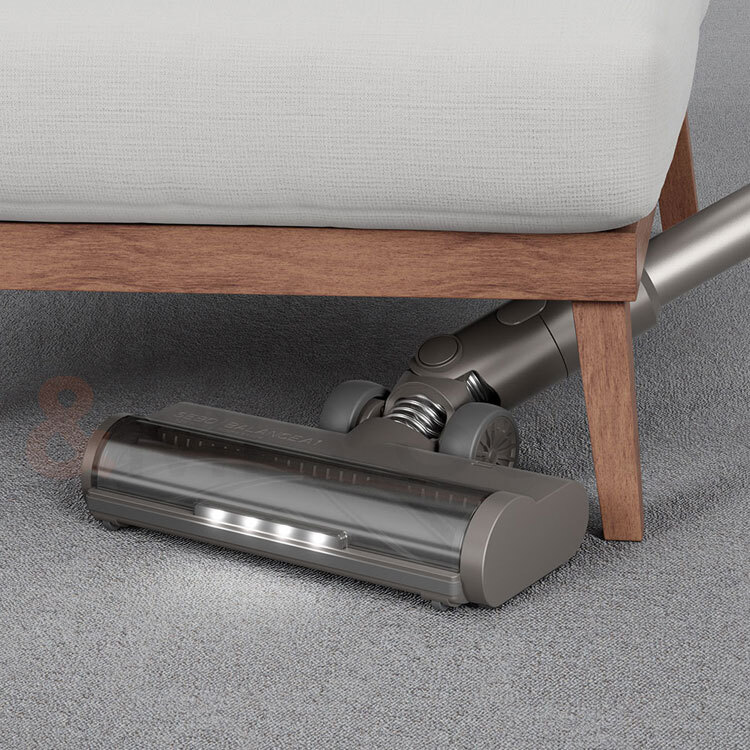 An integrated LED headlight illuminates dark areas under furniture and along edges, making hidden dust and debris easy to spot and remove.