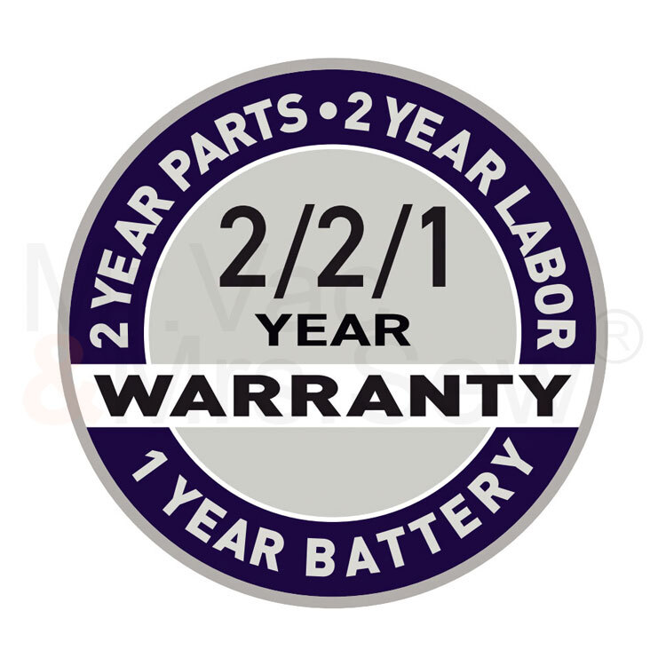The warranty of Sebo A1 Balance covers 2 Years on Non-Wear Parts, 2 Years of Labor, and 1 Year on the Battery. Mr. Vac & Mrs. Sew is an authorized Sebo dealer.