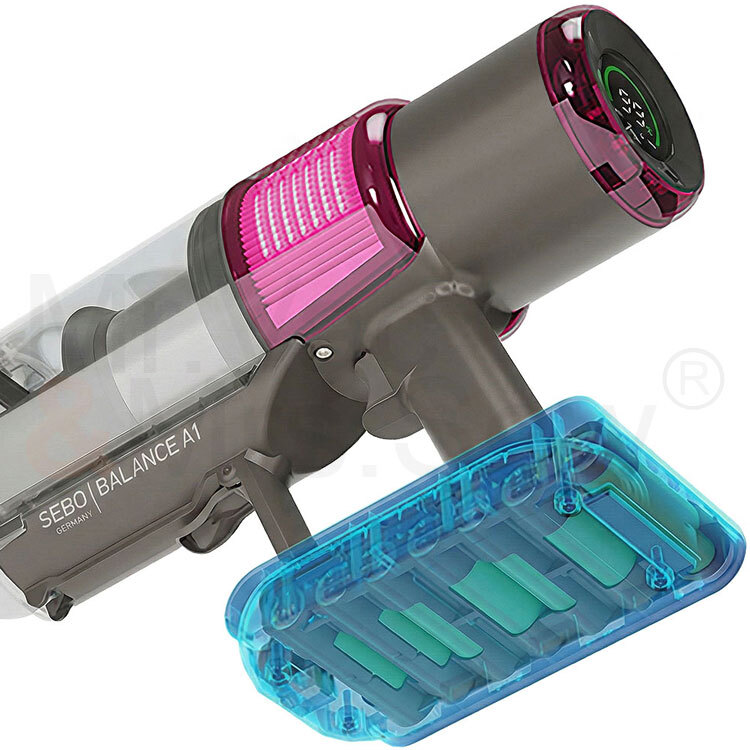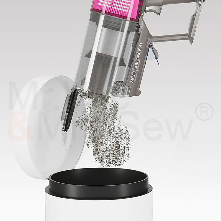 The SEBO BALANCE A1 marks a new era in everyday cleaning, combining decades of German engineering expertise with advanced cordless technology in a lightweight, versatile design. Weighing just five pounds, this battery powered vacuum is effortless to maneuver across floors, stairs, and hard to reach areas, making daily cleaning faster and easier than ever. Powered by a high speed digital brushless motor exceeding 100,000 rpm, the BALANCE A1 delivers strong, consistent suction with three selectable power levels to match any surface or task. Its long lasting battery provides up to 48 minutes of runtime on Power Level One or up to 20 minutes on Power Level Three, offering the flexibility to thoroughly clean most homes on a single charge while maintaining quiet operation at just 70 dB on the lowest setting. Designed for comfort and longevity, the soft start switch gradually powers up the motor to extend its lifespan, while the intuitive LED display clearly shows remaining battery life as a percentage and displays the selected power level in an easy to read bar graph. A premium multi stage microfiltration system uses cyclonic separation, mini cyclones, and advanced filters to capture fine particles and release air back into the room cleaner than before. For deeper cleaning, the powerful electric brush features an LED headlamp, shock protection, and self cleaning anti hair wrap technology to effectively remove dirt and hair from all floor types. Built in automatic shut off protection prevents damage in the event of clogs or brush obstructions. Available in gray, blue, and magenta, the SEBO BALANCE A1 is an ergonomic, quiet, and powerful cordless vacuum designed to handle everyday cleaning challenges with ease.